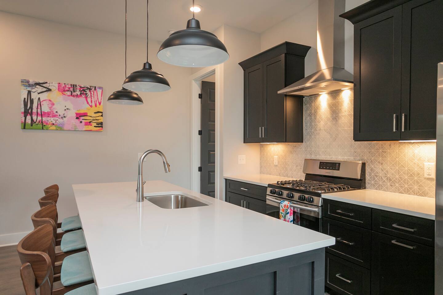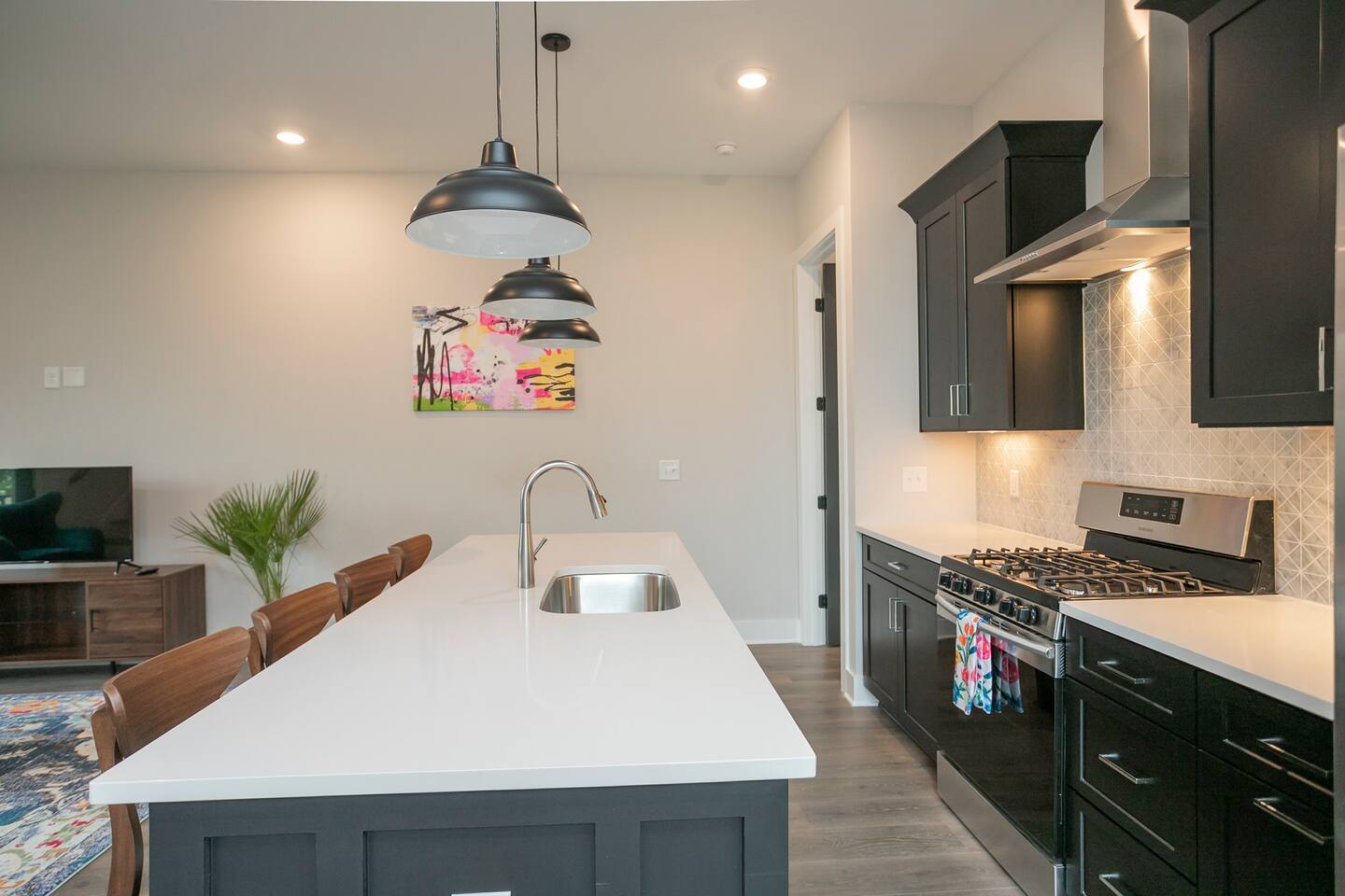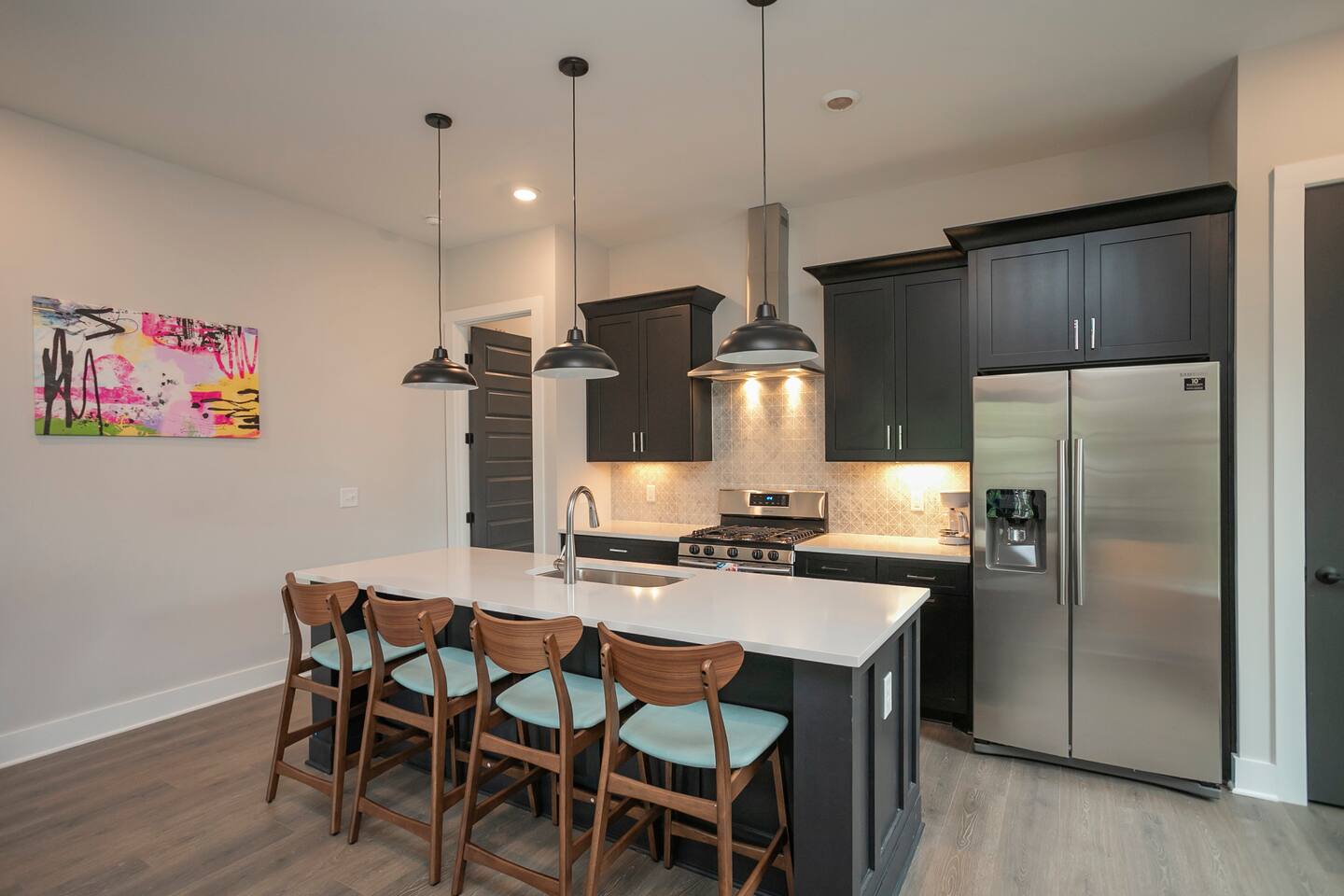 All of our Homes are fully equipped with! -Marble counter tops -Full baths and showers -Spacious open layoutEnjoy our fully equipped kitchens with marble countertops and amazing Bathrooms! First Floor: -> half bath -> laundry Second Floor: ->Master Suite w/ King bed, Roku TV, ensuite bath ->Living area with sleeper sofa, Roku TV ->Full kitchen with Basics! Third Floor: ->Queen bedroom w/ Roku TV -> Twin Bunk Room w/ Roku TV (4 twin beds) ->Full bath (shower/tub combo) -Wifi -Parking for Two Vehicles -Extra Street Parking
