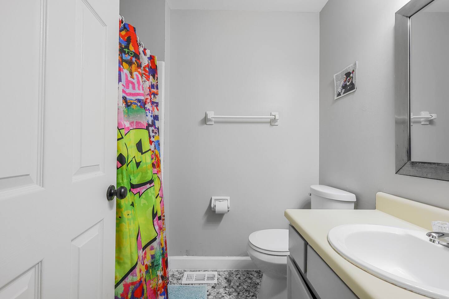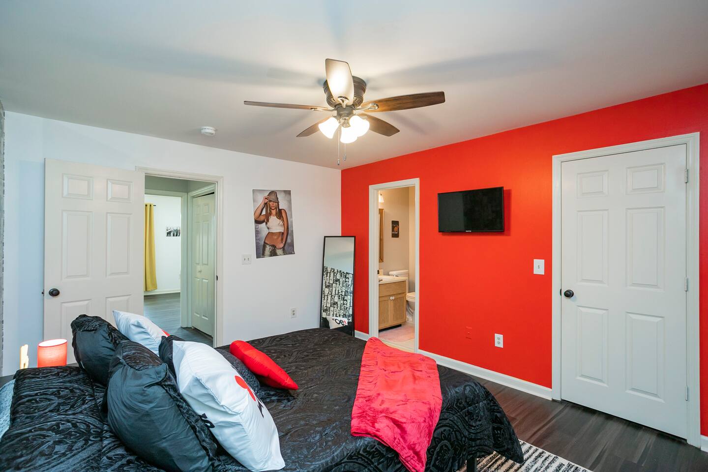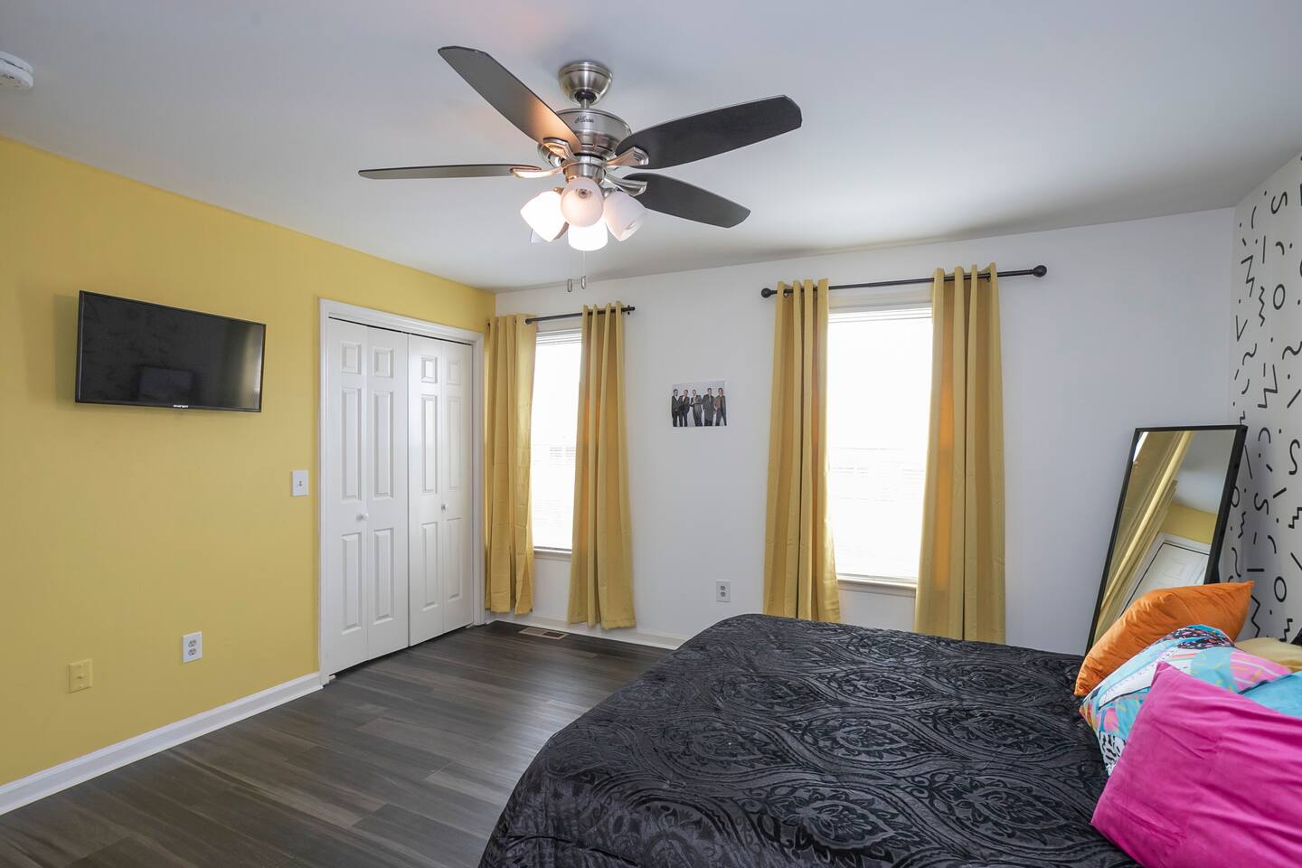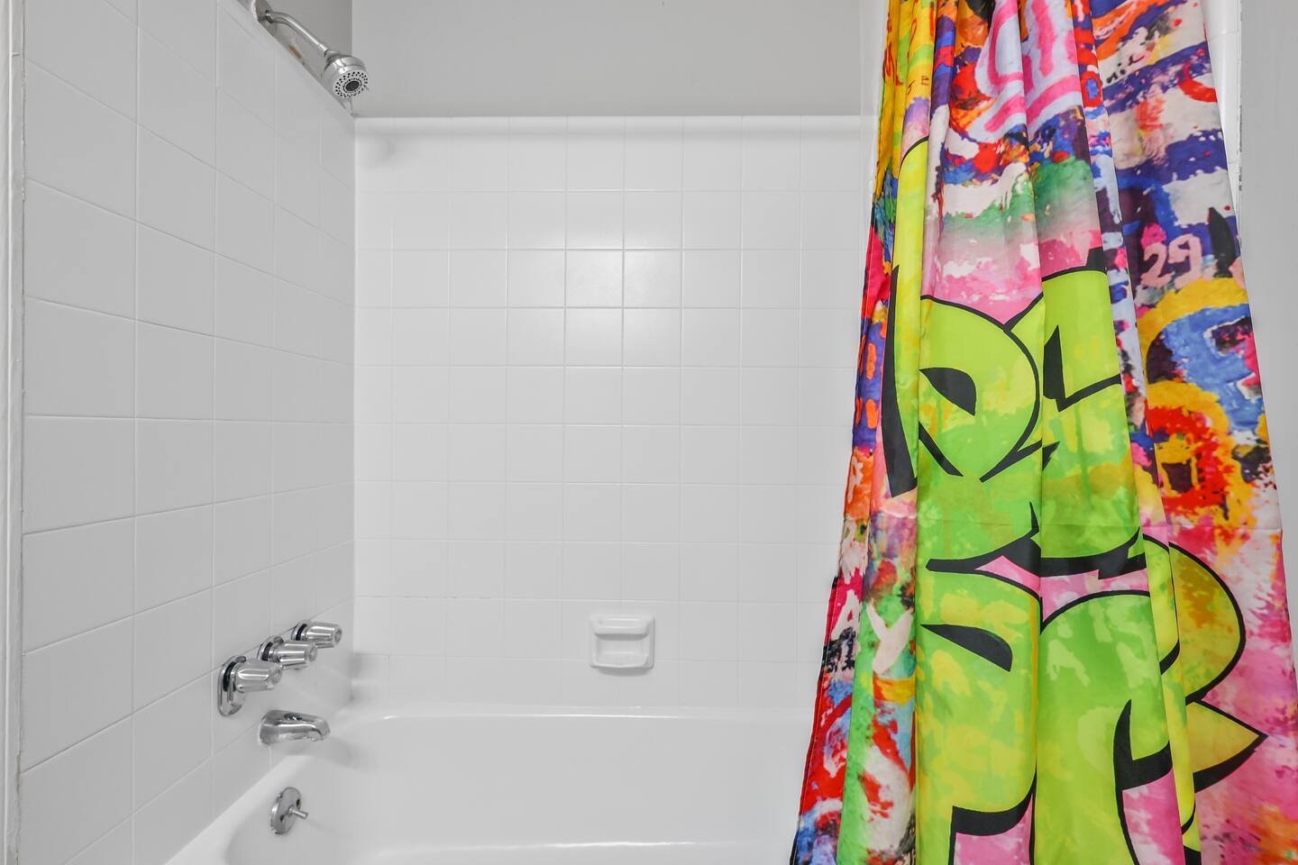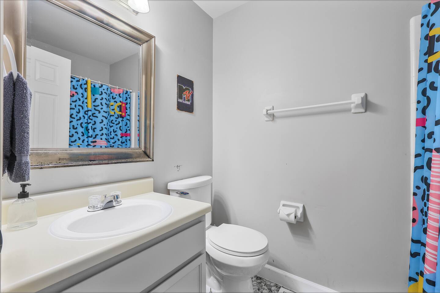 Our fav 90's nostaglia brought to life! Poster's hung up middle school style, bright colors, Saved by the Bell design mixed with a selfie wall throwing it back to large cell phones + Slater's Slating:) 1st floor: ->full kitchen ->living area with two futons and a twin bed ->4 seater dining ->1/2 bath ->outdoor patio 2nd floor: ->two queen bedrooms each with an ensuite RENOVATED bathroom!