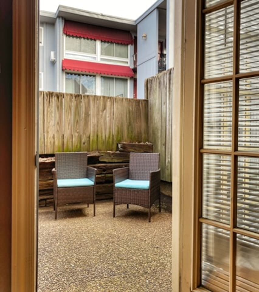 Cozy - Homey - Quiet + a great place to relax! 1st floor: ->full kitchen ->living area with two futons and a twin bed ->4 seater dining ->1/2 bath ->outdoor patio 2nd floor: ->two queen bedrooms each with an ensuite bath *please note these townhomes are not new builds, they are from the late 80s and hold some character still from then! We are located right off West End, a highly sought out quiet neighborhood, close to all highways, downtown + lots of places to eat + explore. Check out the parthenon! 6 minutes to downtown! 4 minutes to midtown! This is a very peaceful and quiet residential area