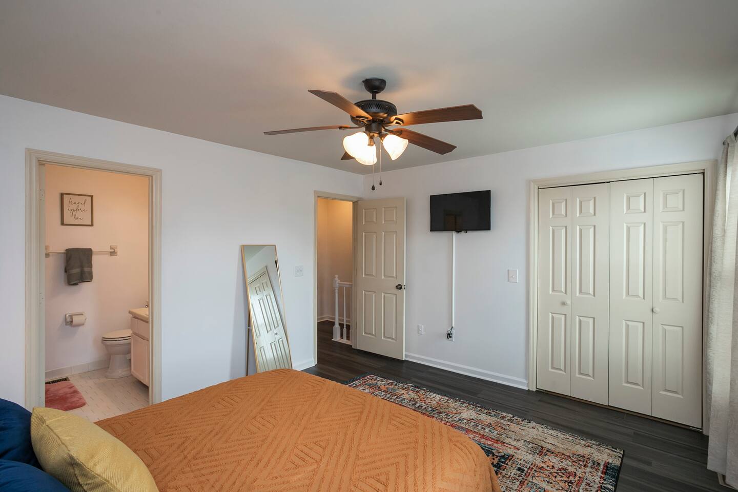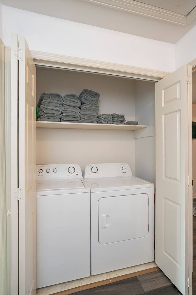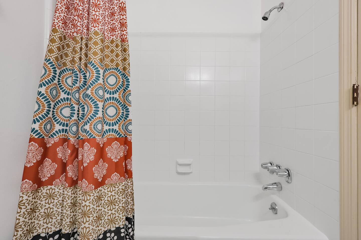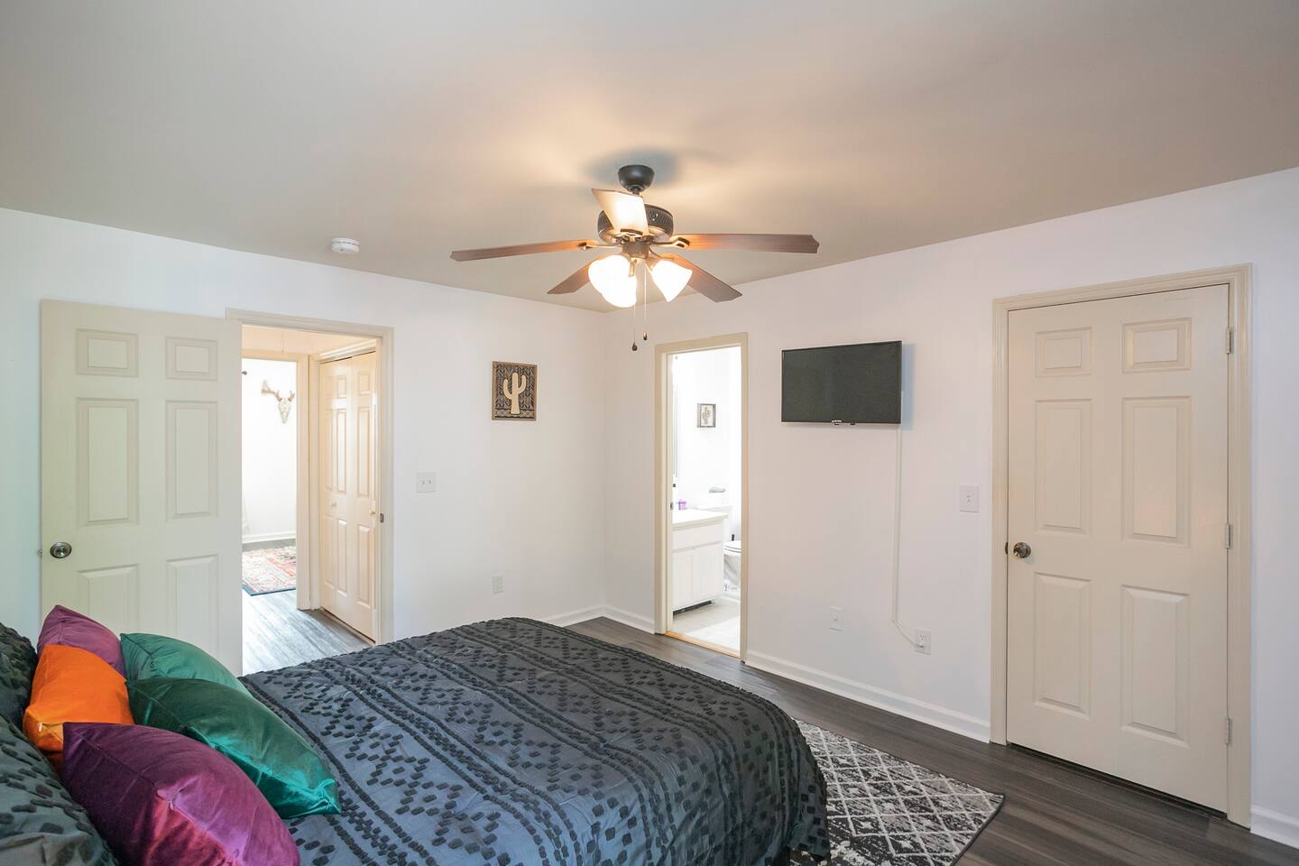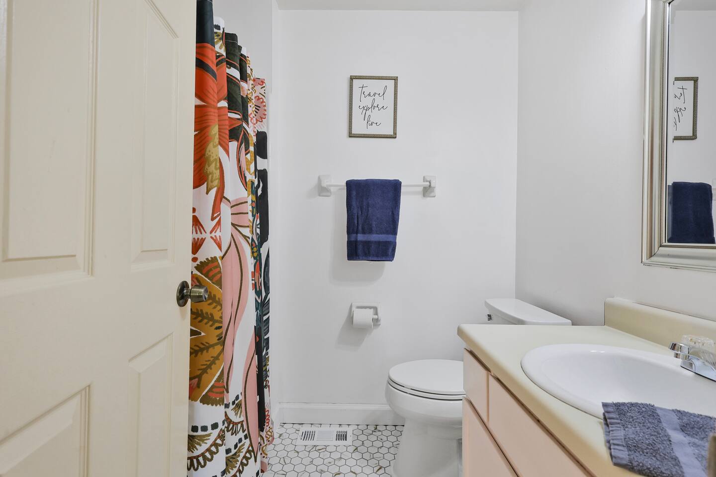Two Story Townhome with a boho fewl! First Floor: ->Spacious living area w/ twin bed + Roku TV -> 4 person pub table ->half bath ->Full Kitchen Second Floor: ->TWO Queen Bedrooms w/ ensuite baths and closets. Roku TV's too! -> Laundry Outdoor Patio + Games! *please note these townhomes are not new builds, they are from the late 80s and hold some character still from then!