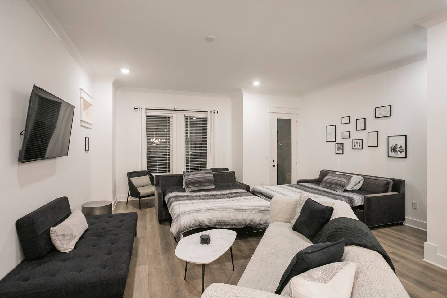 Welcome to the 615.. First Floor: ->Queen bedroom w/ Roku Tv ->Shared bathroom ->Queen bedroom Second Floor: ->Main living area w/ 2 queen sleeper sofas ->Roku TV ->6 person dining ->Full Kitchen ->Half Bath Third Floor: ->Queen bedroom w. ensuite bath ->Master bedroom w. King Bed, Roku TV + ensuite bath ROOFTOP! -> UPDATED furniture + lounge areas! ->Check out the CITY LINE views! DISCLAIMER: -Additional guests outside of your confirmed guest count are not allowed on our property + go against your rental agreement. -We have a zero tolerance policy on our property being used for ANY kind of loud gathering or party. We have cameras + security. Per your rental agreement this is grounds for eviction without question or refund + possible legal action. -Upon confirming your booking, you are subject to our House Rules, Rental Agreement which you sign and/or enter it upon checking in, which includes this disclaimer + much more. *NO LOCALS ALLOWED TO BOOK ANY OF OUR PROPERTIES, YOU WILL BE CANCELLED*