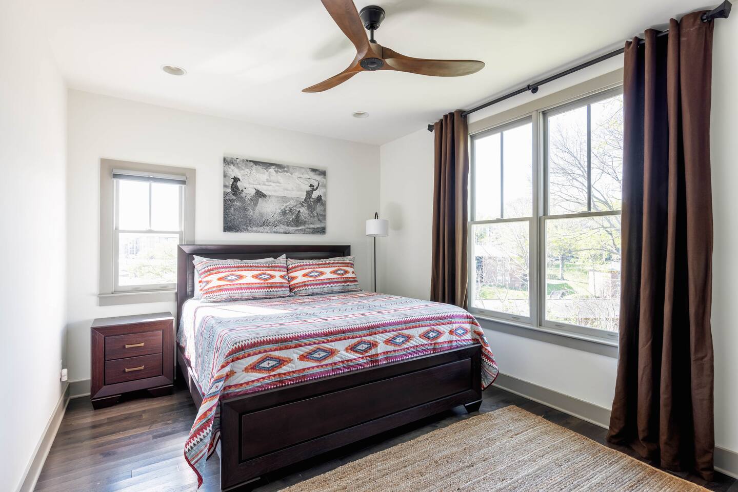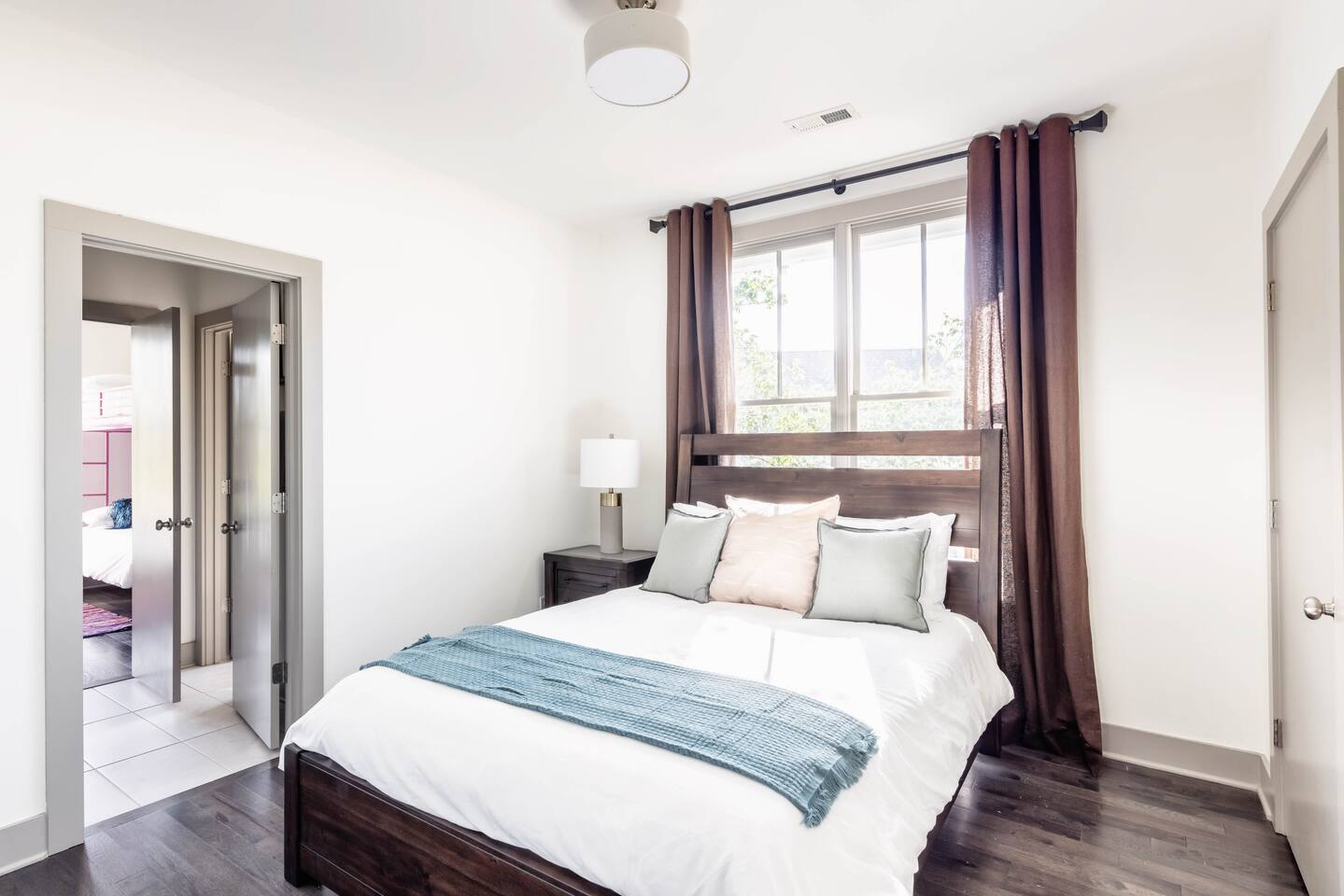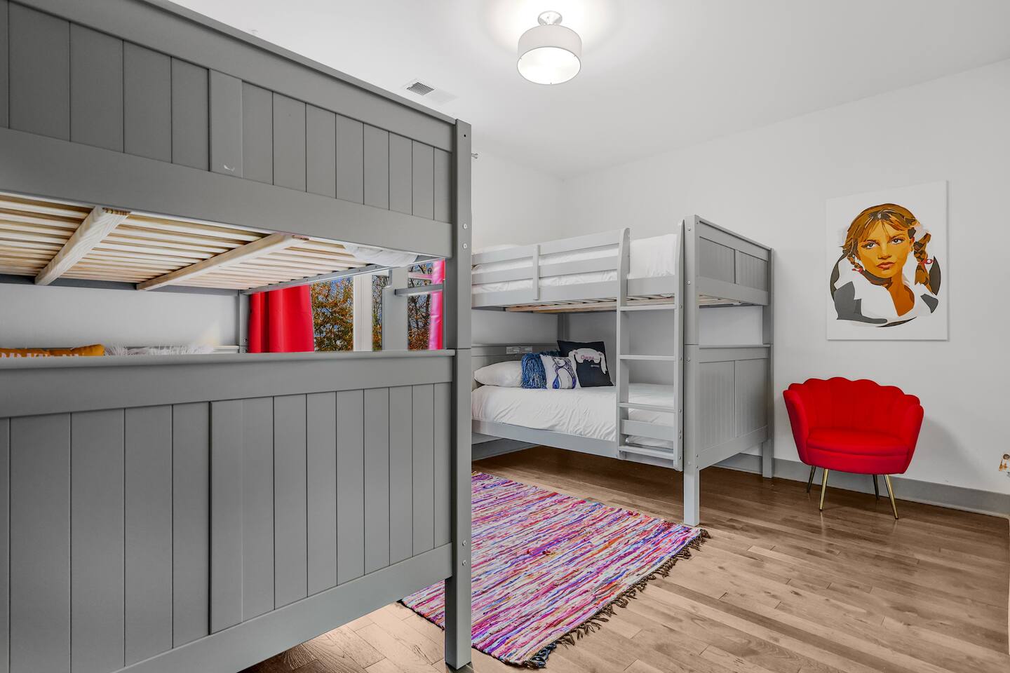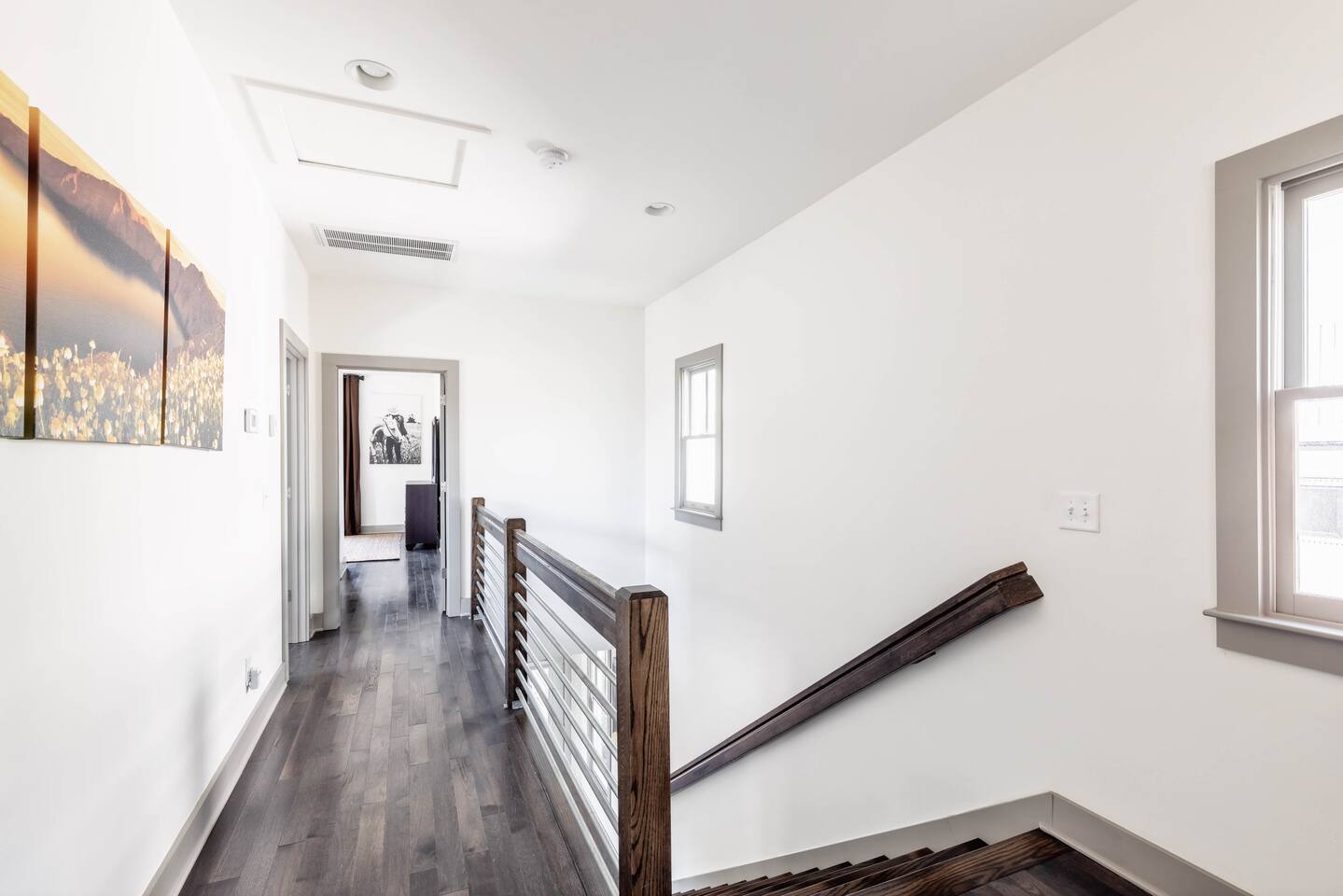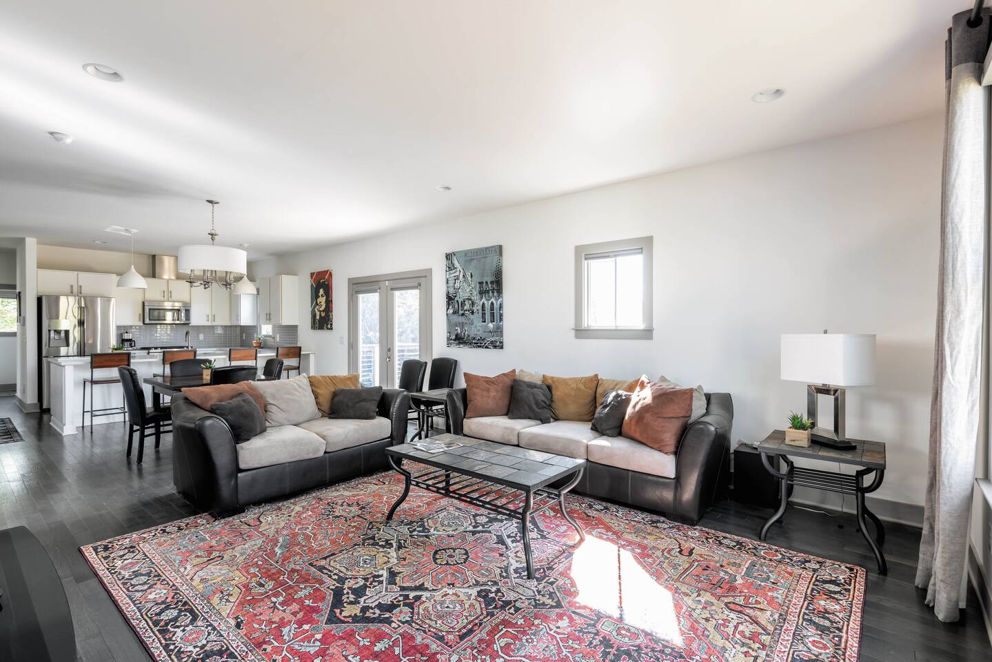 Hang outside enjoying the tranquil nature haven; firepit, outdoor eating area, Adirondack chairs, find your peace + serenity here! When you step inside be reminded you're in Music City y'all! -From Chris Stapleton to Britney Spears you've got the Nashville vibe in every room of this beautiful home. First Floor -> Living area w/ tv -> Full Kitchen -> Dining area -> Half bath **Balcony off the dining area has city skyline views! On 4th of July you have a direct view to the fireworks! Second Floor -> Master bedroom: King Bed ->Master Bath: Shower ->Queen Guest Room ->Full Size beds- Bunk Room -> Full Bathroom for Queen/Twin Room **Outdoor Nature Haven + Patio! **Parking for 2 cars outside our gate + extra street parking!
