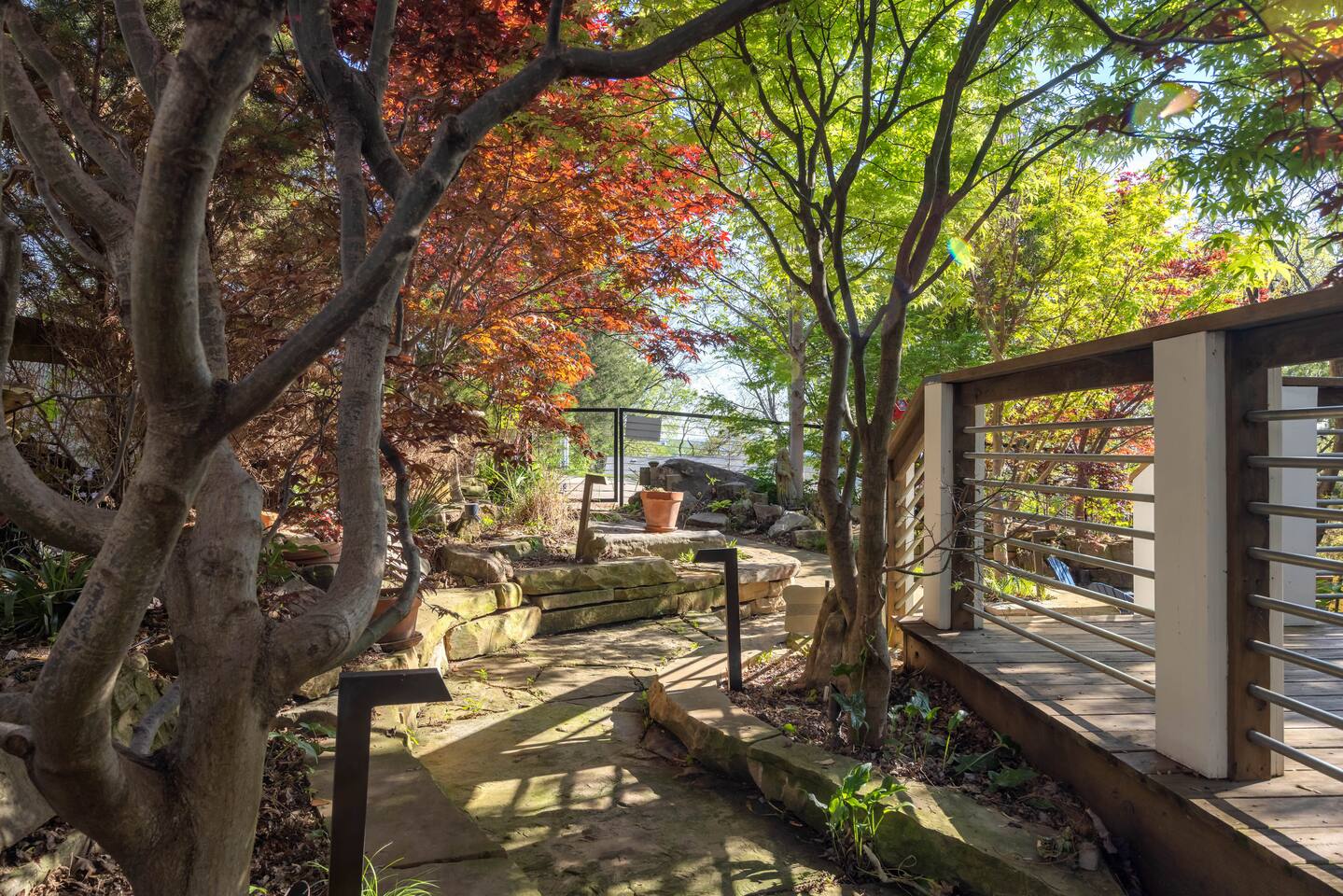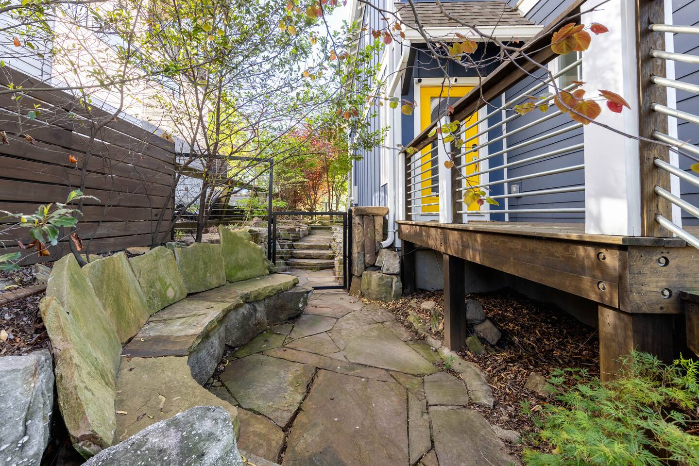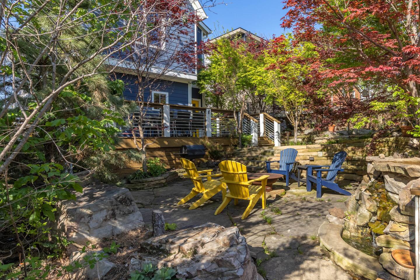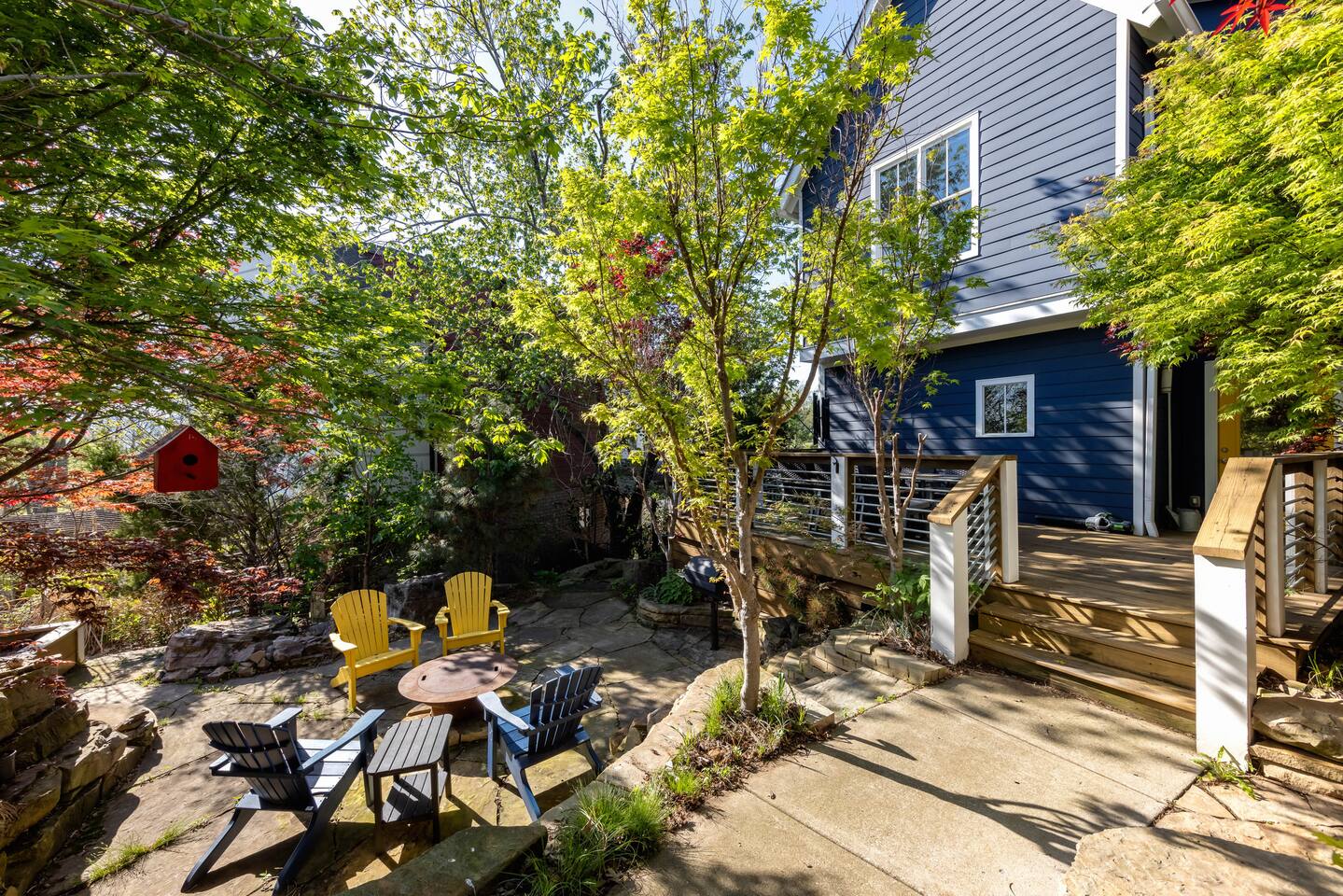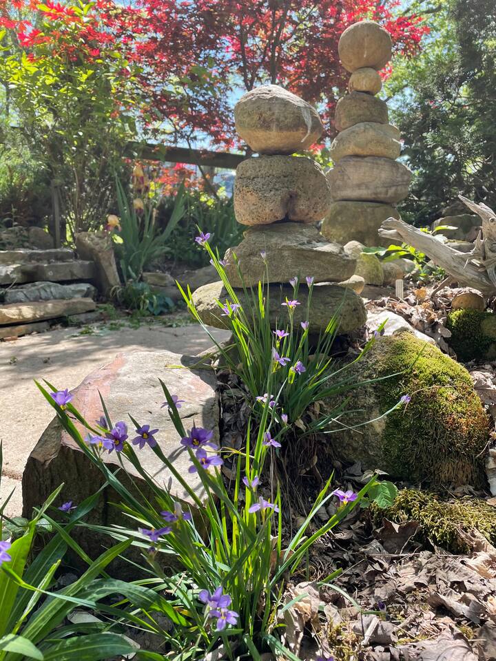 The East Nashville Nature House has a over 100 tons of stone, lush trees + flowers set in a secret garden off the home that will make you feel like you've stepped into an Arboretum! It's rare to find the retreat this space offers RIGHT outside city lines! 8 min to Downtown Nashville! We are within 5 to 10 minutes of everything iconic in East Nashville! Venues like the Basement East, Five Points, Fatherland Street shops + restaurants, Nissan Stadium + Broadway!