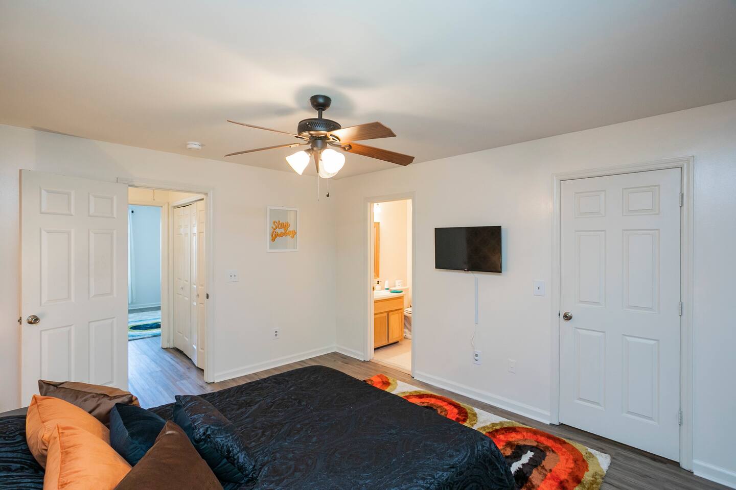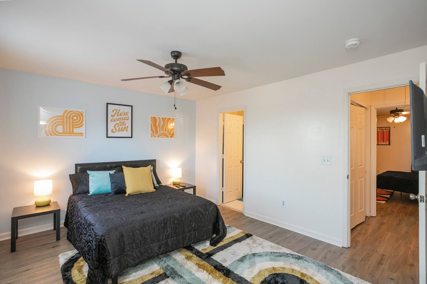 We are located right off West End, a highly sought quiet neighborhood, close to all highways, downtown + lots of places to eat + explore. Check out the Parthenon! 6 minutes to downtown! 4 minutes to midtown! 8 minutes to Nissan Stadium! 8 minutes to Five Points! Come unwind + get funky at our newly renovated pad. Enjoy the comfort of your own ensuite bath off the queen bedrooms. Play some cornhole or ring toss in the patio area + relax!