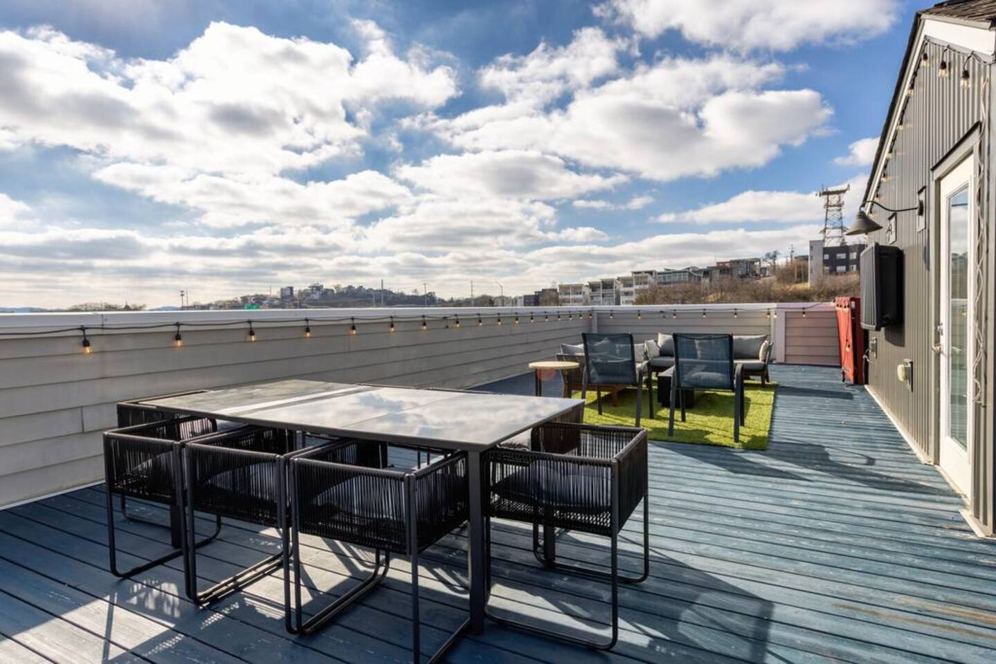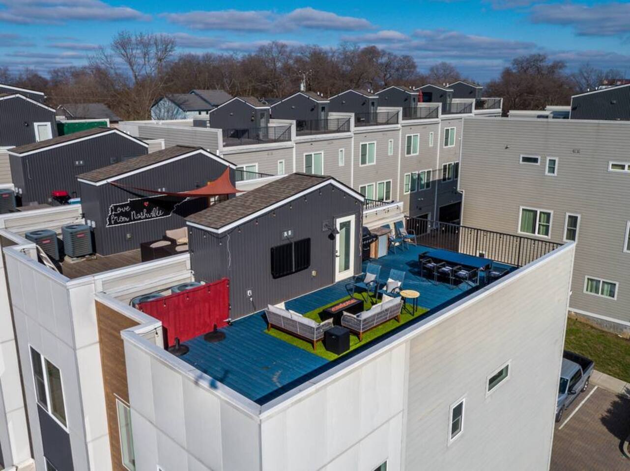 Amazing rooftop views of Downtown Nashville + city living! Located in a central area, you'll have easy access to the thriving neighborhoods of West End, Midtown, Vanderbilt, and the renowned local attractions such as the Parthenon. Easy access to highways! Short ride share drives to Broadway! Surrounded by a vibrant local scene. Explore the nearby bars and restaurants in the Nations, West End, Midtown and beyond! Indulge in delicious cuisine and experience the lively atmosphere of the city.