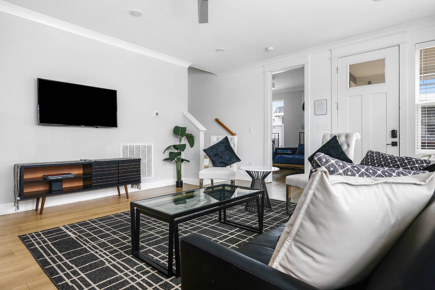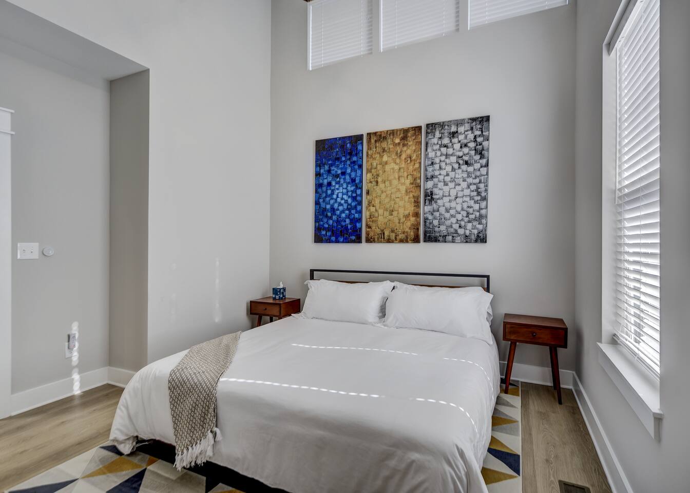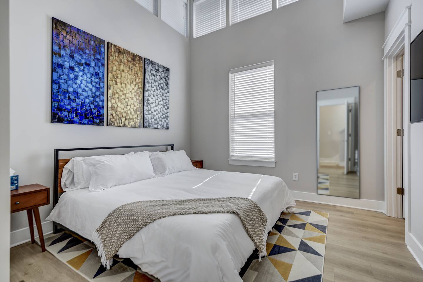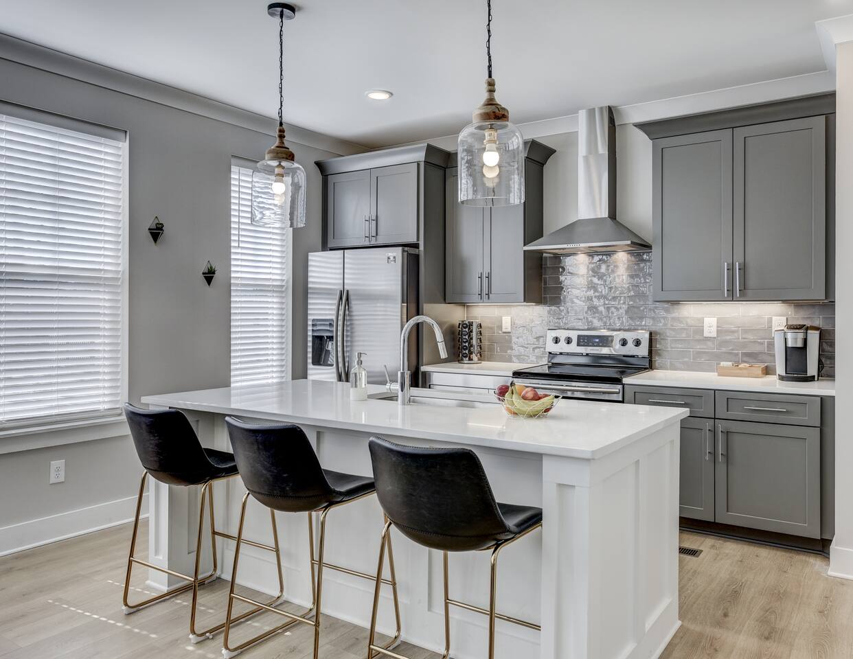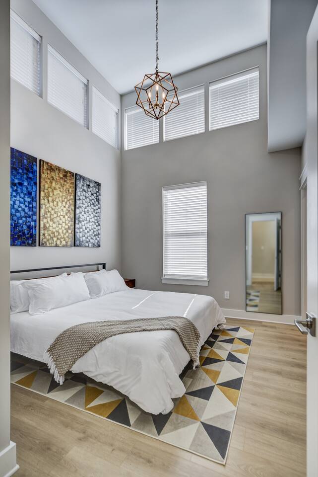 Amazing 3 bedroom Townhome centrally located in Music City!! 1st floor- Queen sleeper sofa 2nd floor- Master bedroom with king bed 3rd floor- Guest bedroom with 2 full beds With fold out queen memory foam mattress 3rd floor- balcony! Full equipped kitchen with sleek modern appliances including pots pans, dishware, bakeware, toaster and a coffee maker! Unit is equipped with smart TVs in the living room and including the upstairs guest rooms!