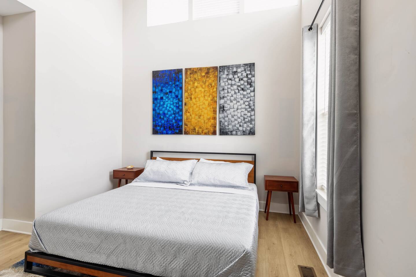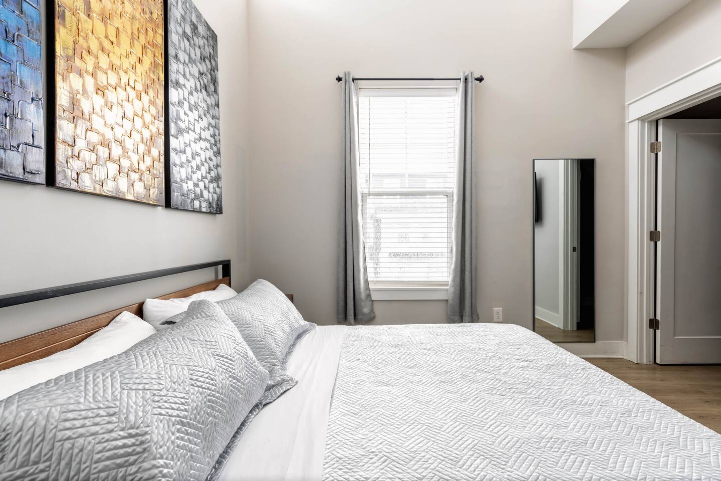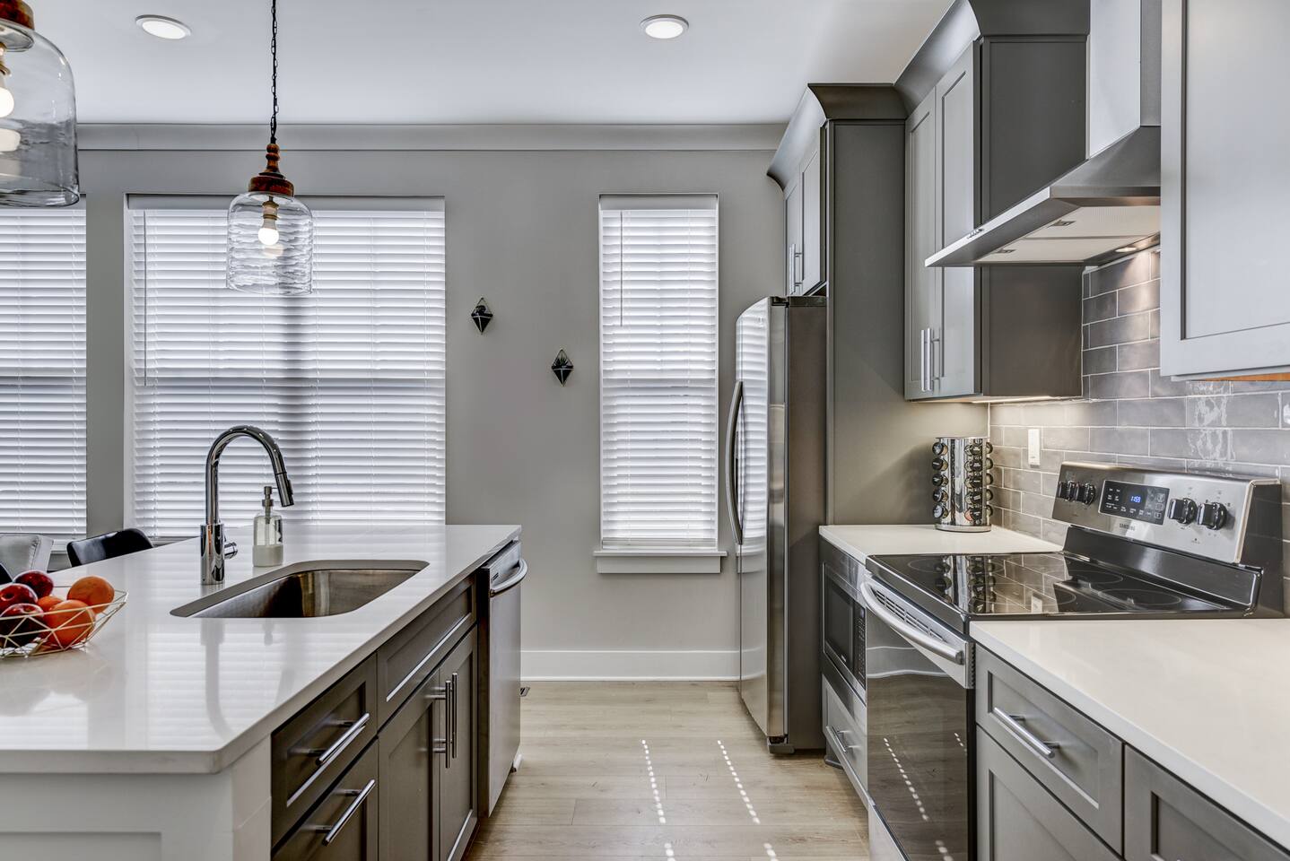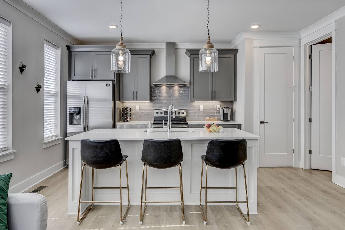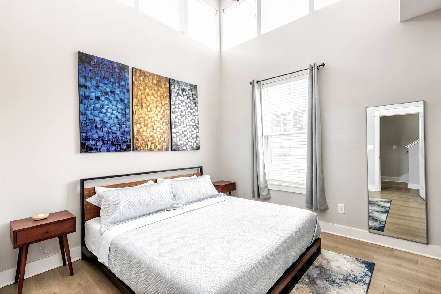 Amazing 3 bedroom Townhome centrally located in Music City!! 1st floor- Queen sleeper sofa 2nd floor- Master bedroom with king bed 3rd floor- Guest bedroom with 2 full beds With fold out queen memory foam mattress 3rd floor- balcony! Full equipped kitchen with sleek modern appliances including pots pans, dishware, bakeware, toaster and a coffee maker! Unit is equipped with smart TVs in the living room and including the upstairs guest rooms!