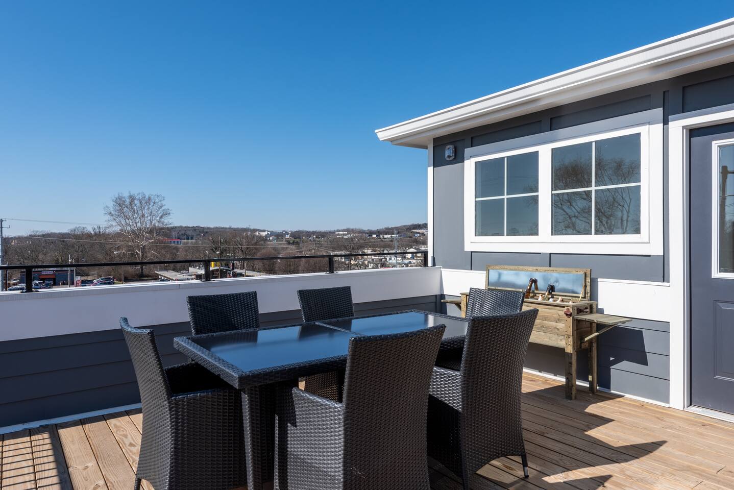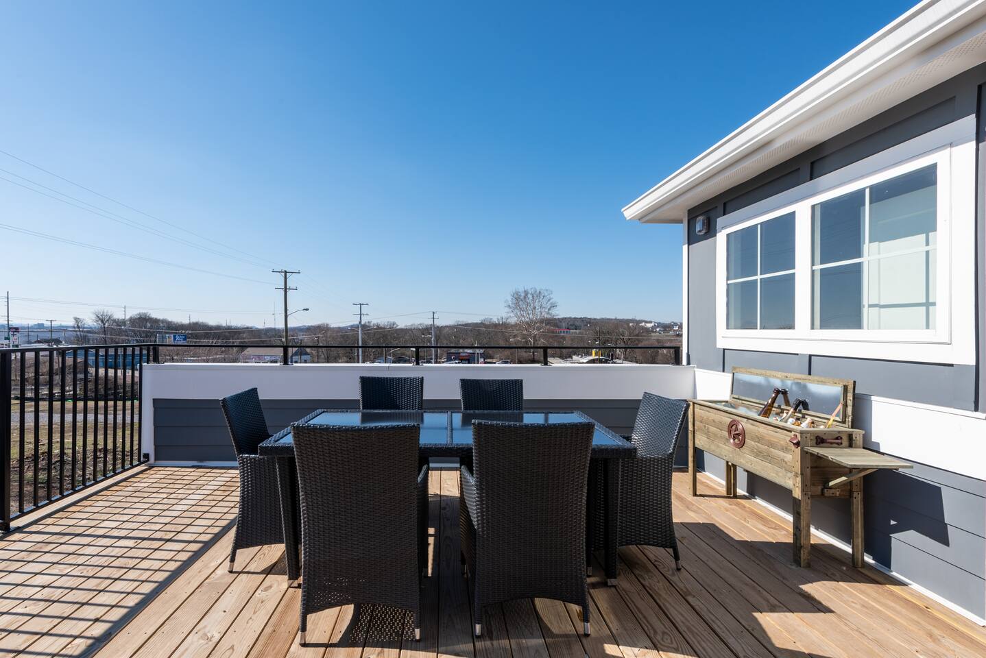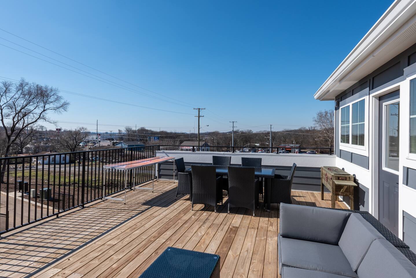 This stylish place to stay is perfect for group trips. We've got everything you need for you stay in Music City! enjoy the rooftop and the spacious layout of the home. Three bedrooms and two and half baths!