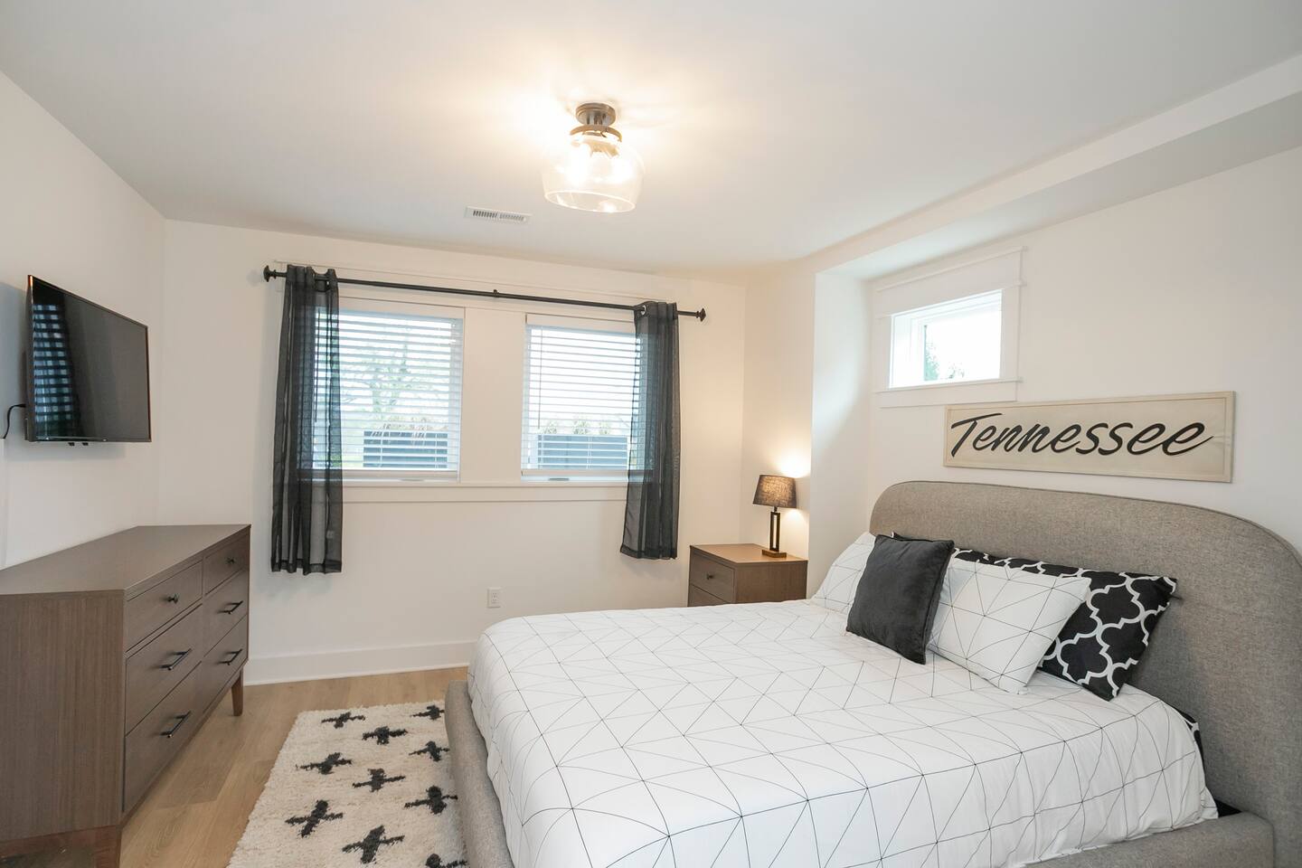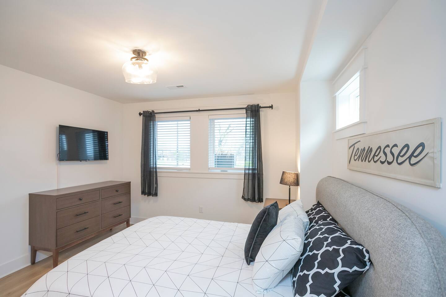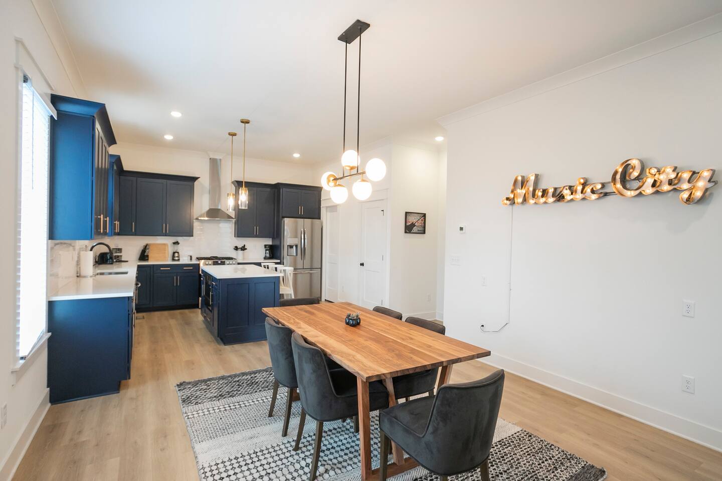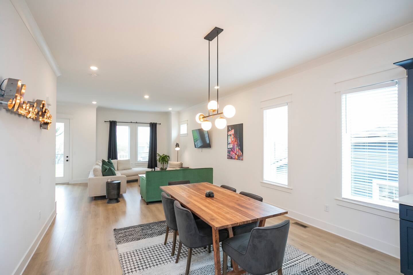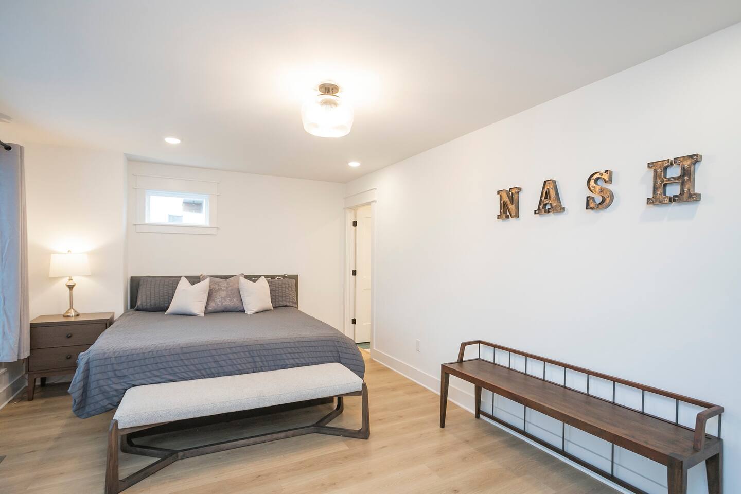 "Rock + Roll Haven" Rock + Roll Haven: 1st Floor: ->"the Bowie" Queen bed + Roku TV ->Shared bath (shower only) ->"the Hendrix" Queen Bed 2nd Floor: ->Main Living Area w/ 2 fold out queen sleeper sofas ->full kitchen ->6 person dining 3rd Floor: ->"icons of the 90s" Queen bed + ensuite bath ->"the Beatles" Master King bed w/ Roku TV + ensuite bath Rooftop! ->Enjoy the birds eye view to downtown! You can see the city line clearly. ->Cornhole, Ring Toss, Darts to play ------ "The Nash Local" The artwork in the unit is all local artists! We love to support our friends and community. Try the local Nash coffees we have also! ✔️The first floor has two queen bedrooms and one bath. ✔️Take the flight of stairs up to the main quarters and you’ll find a fully equipped chefs kitchen, a six person designer wood table to dine, and an expansive living area. ✔️Take the next flight of stairs up to the third-floor where you will find a queen bedroom with a bathroom, a king master with an en suite bathroom. ✔️Take some selfie‘s or group photos in front of our Nashville selfie wall! ✔️Enjoy the rooftop feels and views as you make your way to the fourth floor. Here you can enjoy a game of cod hole or ring toss!
