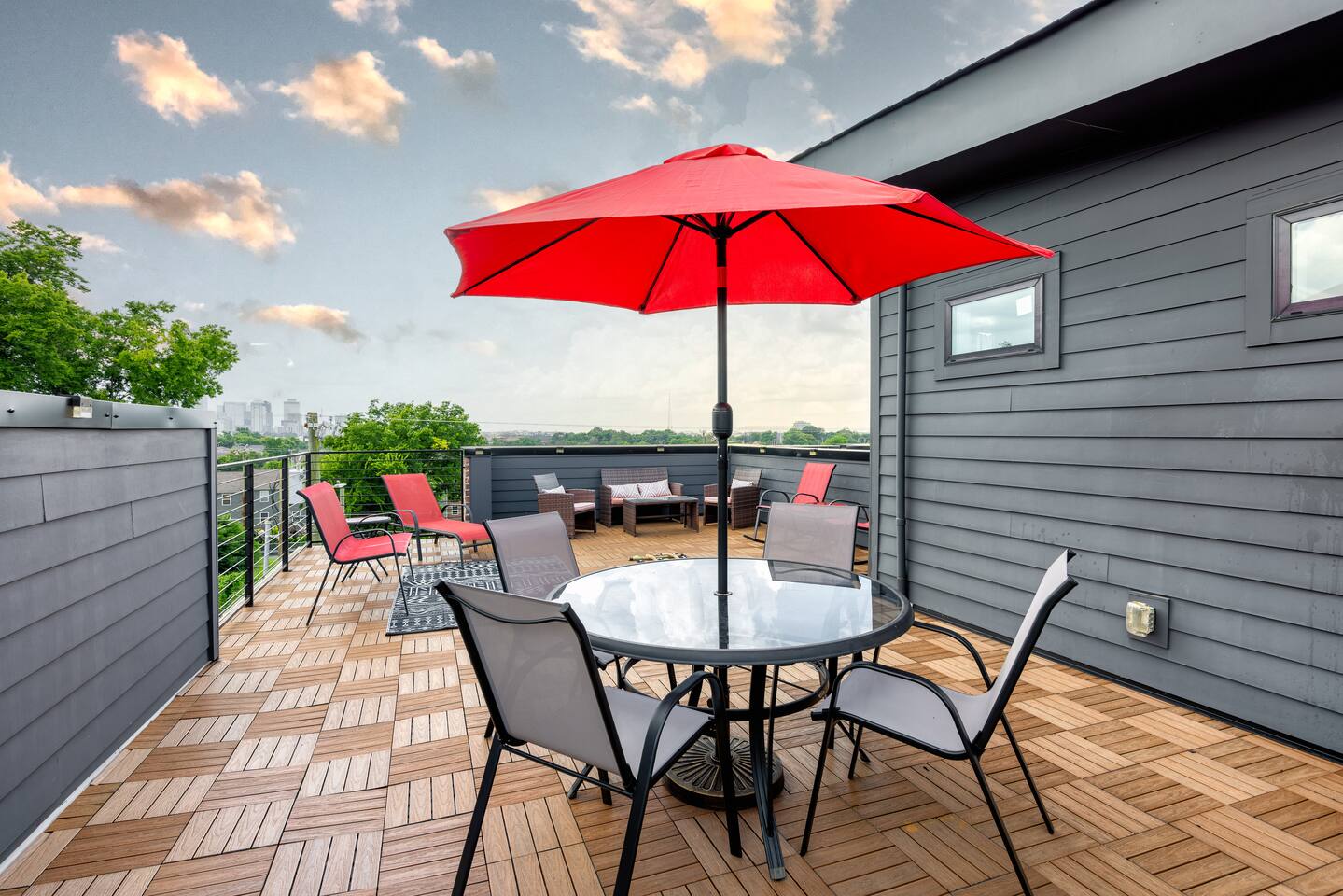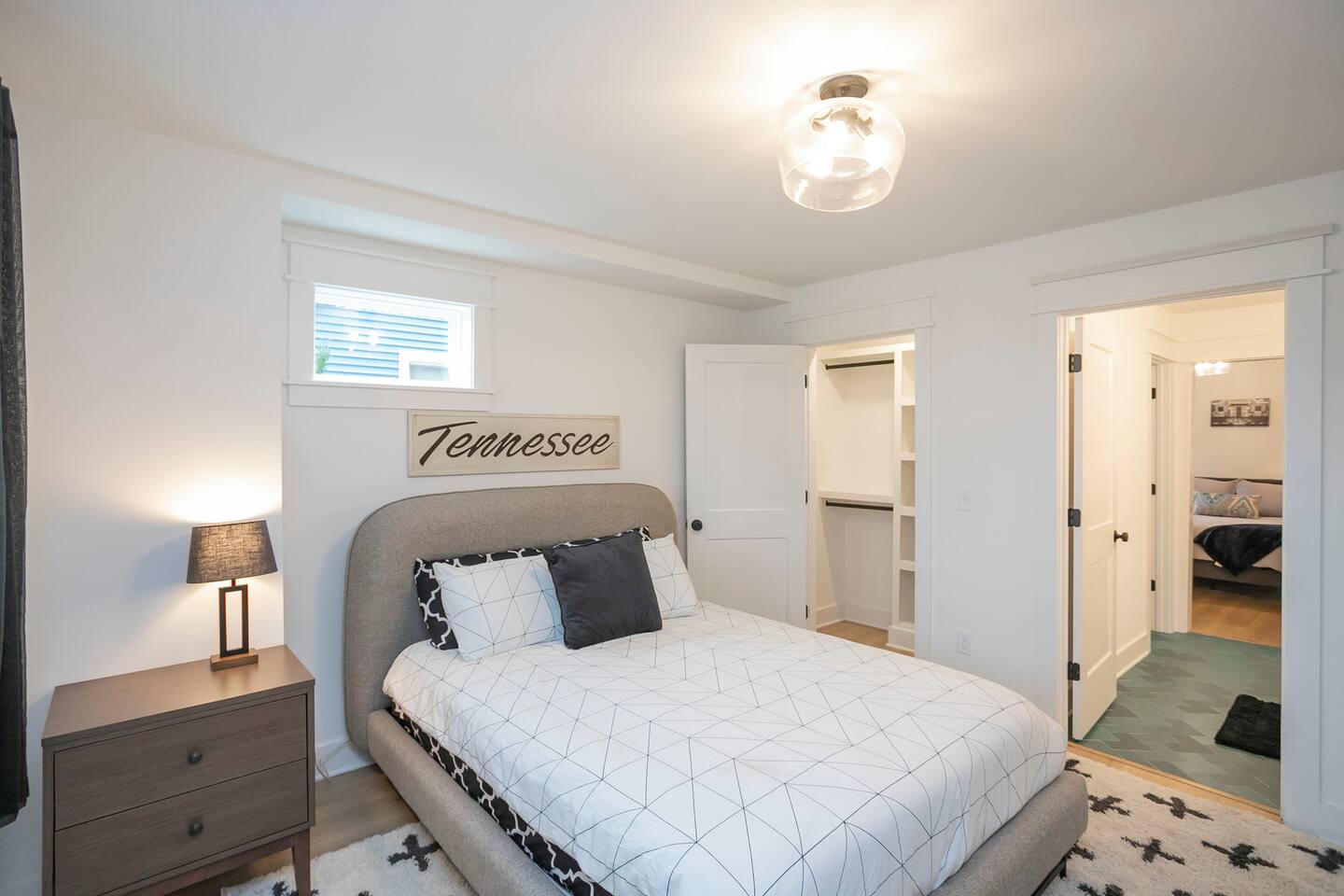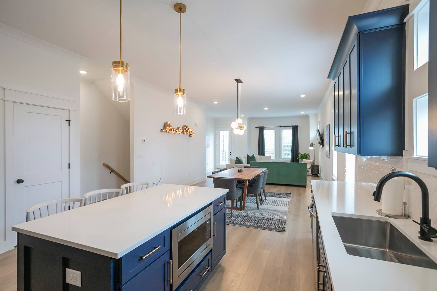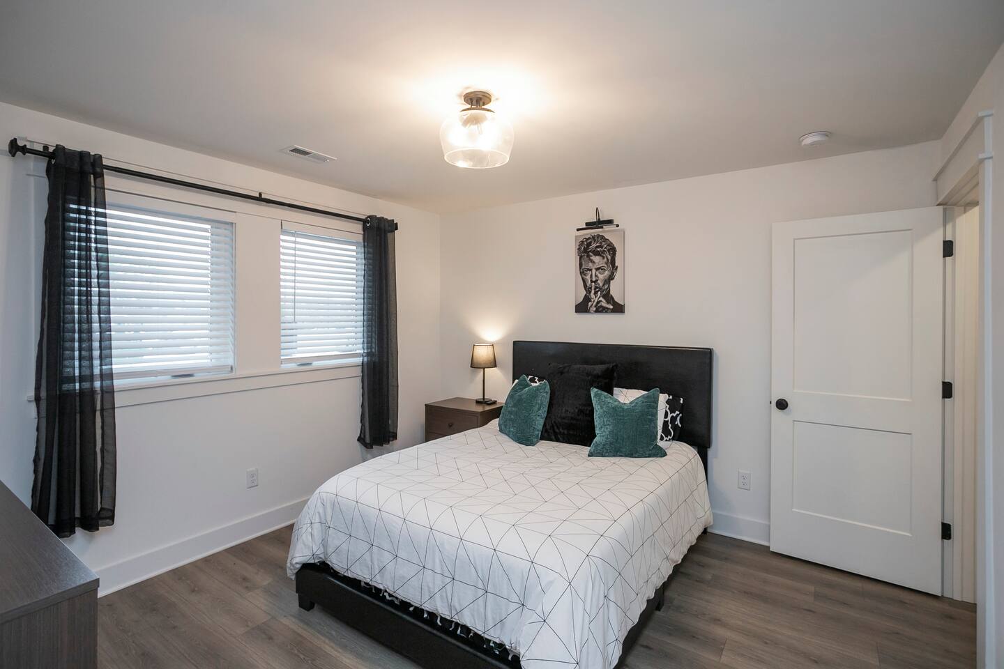"Rock + Roll Haven" Rock + Roll Haven: 1st Floor: ->"the Bowie" Queen bed + Roku TV ->Shared bath (shower only) ->"the Hendrix" Queen Bed 2nd Floor: ->Main Living Area w/ 2 fold out queen sleeper sofas ->full kitchen ->6 person dining 3rd Floor: ->"icons of the 90s" Queen bed + ensuite bath ->"the Beatles" Master King bed w/ Roku TV + ensuite bath Rooftop! ->Enjoy the birds eye view to downtown! You can see the city line clearly. ->Cornhole, Ring Toss, Darts to play ------ "The Nash Local" The artwork in the unit is all local artists! We love to support our friends and community. Try the local Nash coffees we have also! ✔️The first floor has two queen bedrooms and one bath. ✔️Take the flight of stairs up to the main quarters and you’ll find a fully equipped chefs kitchen, a six person designer wood table to dine, and an expansive living area. ✔️Take the next flight of stairs up to the third-floor where you will find a queen bedroom with a bathroom, a king master with an en suite bathroom. ✔️Take some selfie‘s or group photos in front of our Nashville selfie wall! ✔️Enjoy the rooftop feels and views as you make your way to the fourth floor. Here you can enjoy a game of cod hole or ring toss!